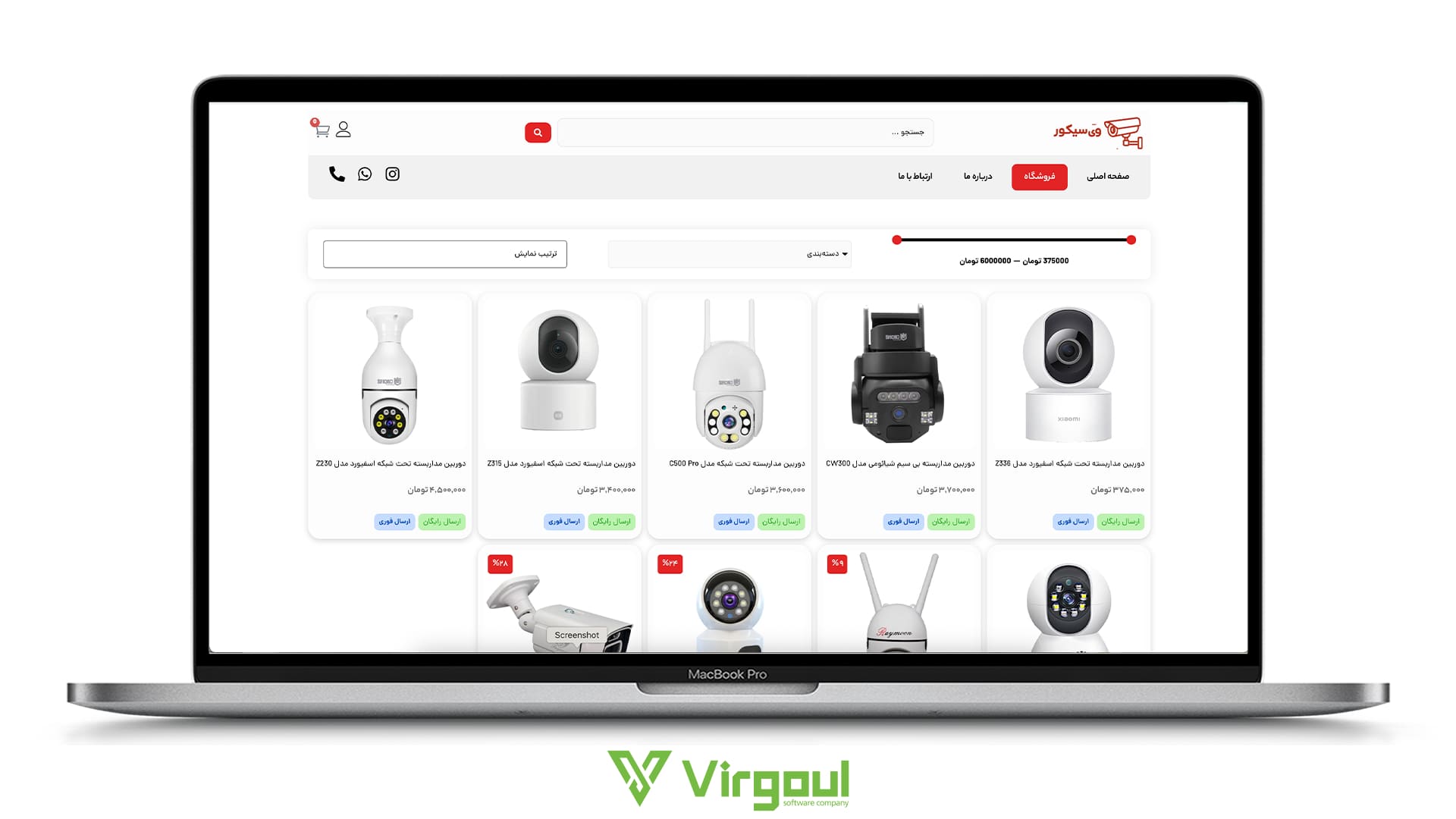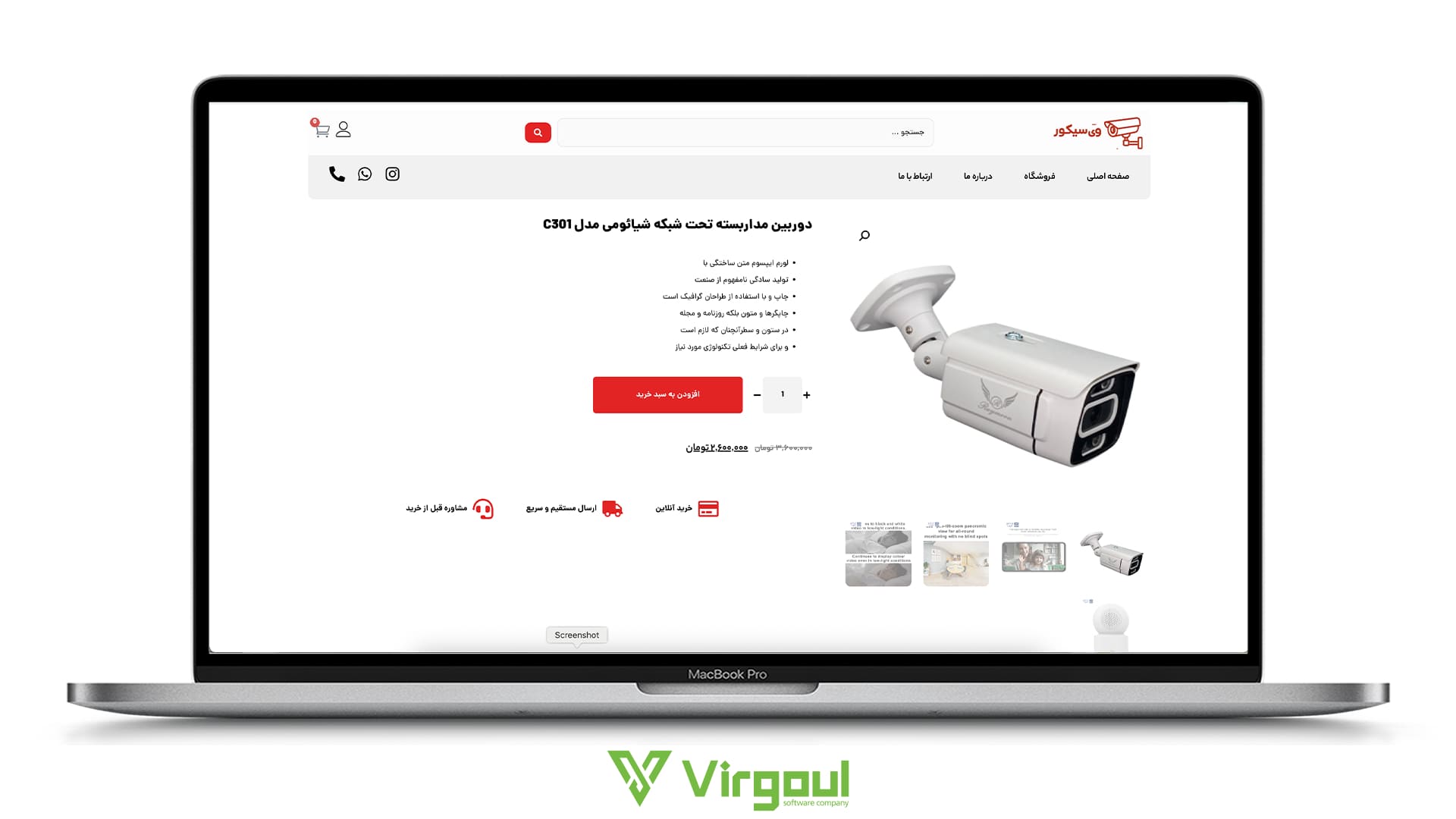 با خرید سایت اماده فروشگاهی از شرکت نرم افزاری ویرگول، یک پکیج کامل شامل طراحی آماده، تست کیفیت و آماده سازی برای انتشار دریافت می کنید. دیگر نیازی به طراحی و توسعه طولانی نیست و می توانید سریع فروش دوربین های امنیتی خود را آغاز کنید.